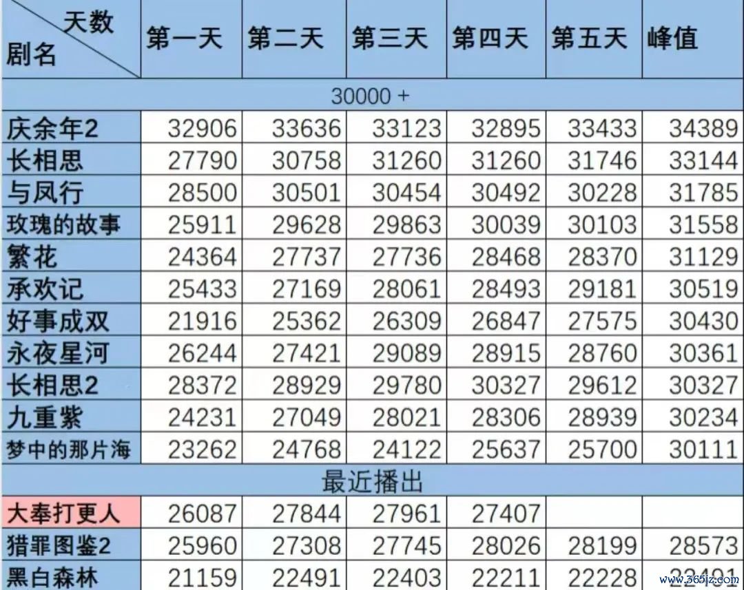 《大奉击柝东谈主》首日站内最高热度冲破26000,《庆余年2》开播44分钟热度就破了26000,开播57分钟热度破30000。