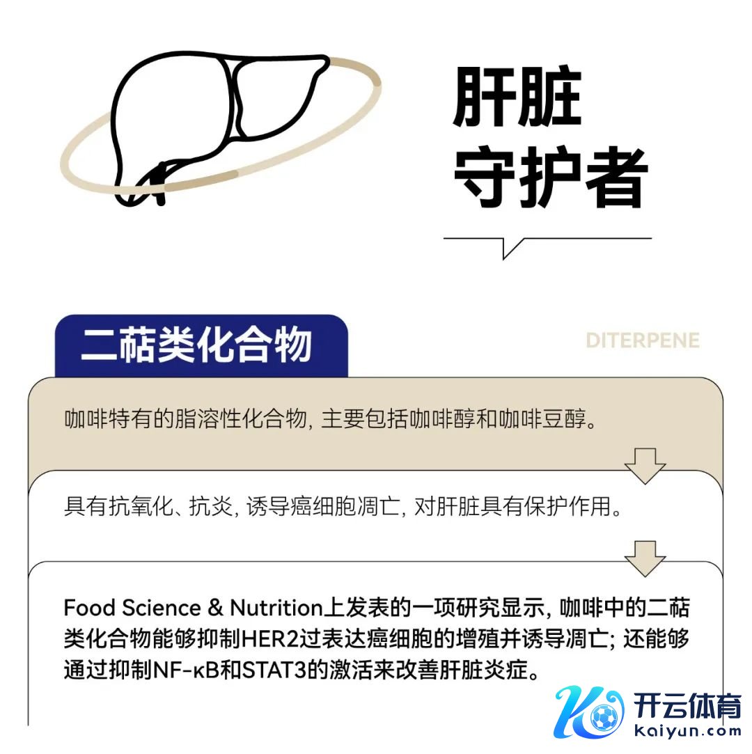 喝咖啡,保护肝脏。北大医学瑞幸咖啡健康转换基地发布的计划后果,揭示了咖啡对肝脏的积极影响。“咖啡是肝脏的看护者”,这是因为咖啡中的咖啡醇和咖啡豆醇对肝脏有着灵验的保护作用,假期酬酢的酒局少不了,咖啡有助于扶植咱们超负荷的肝脏。永久适量地摄入咖啡因,还不错防护肝硬化和脂肪肝。