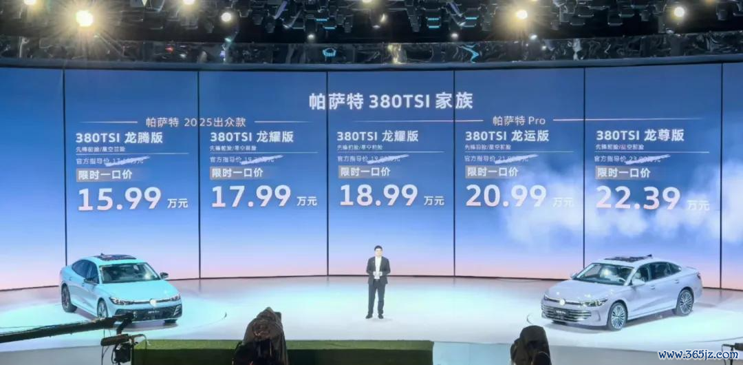 2024款帕萨特,搭载高功率2.0T发动机的380TSI龙耀款车型,起步价是接近19万,而2025款帕萨特,雷同是起步的龙耀款,设备价降到了17.69万,竖立还有所加多,按照以往的惯例,曾经极端有真心了,可是在发布会上,上汽巨匠出东说念主预感地整了一出“限时一口价”:15.99万,比老款设备价足足降了近4万。