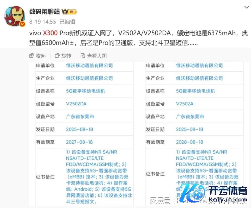 续航方面,博主“数码闲话站”此前曾发文裸露,vivo X300 Pro新机双证已入彀,其额定电板为6375mAh,电板典型值为6500mAh±,还有赈济北斗卫星短信功能的版块。而X300步调版电板比网传的要小少量,具体容量未知,待科仔再探再报!