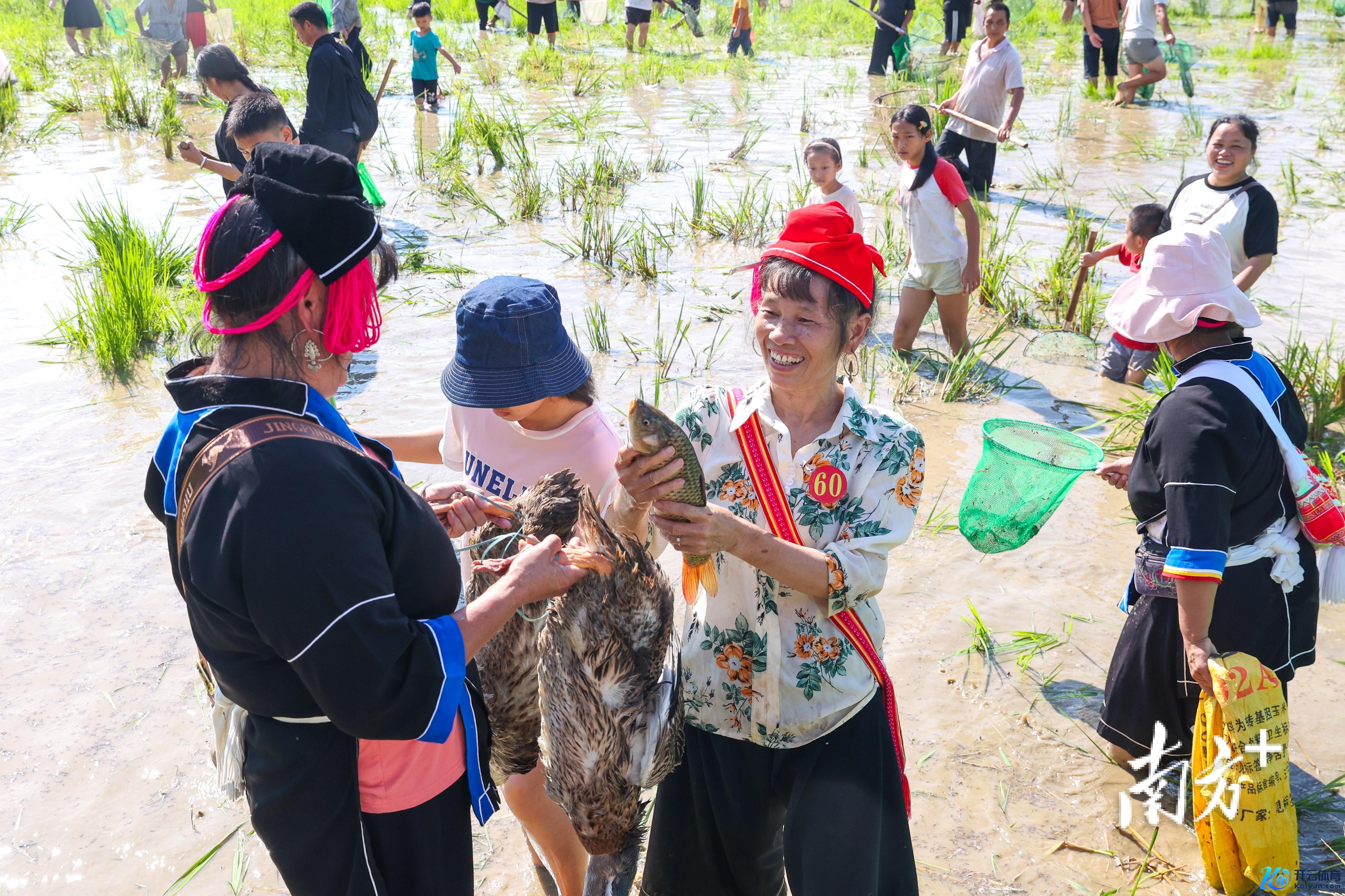 算作本届文化季的中枢体验时局,“全民渔乐”行径机动展现出连南瑶族“稻鱼共生”的千年生态农业贤慧。贫寒理智的排瑶东说念主民为处分食粮增收的问题,在稻田中放养鱼苗,鱼苗在吃稻花、稻虫和杂草长大的同期,也为禾苗除草除害。如今在连南,稻田鱼已不单是是一个传统的耕种情势,而是造成了一个生态产业。