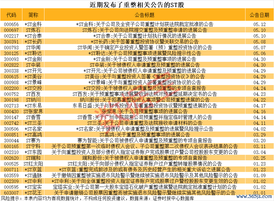 财富重组、收歇重组的ST股曝光